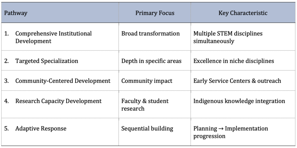 - “Grow your own” faculty development strategies supporting existing personnel through graduate education rather than relying primarily on external recruitment.